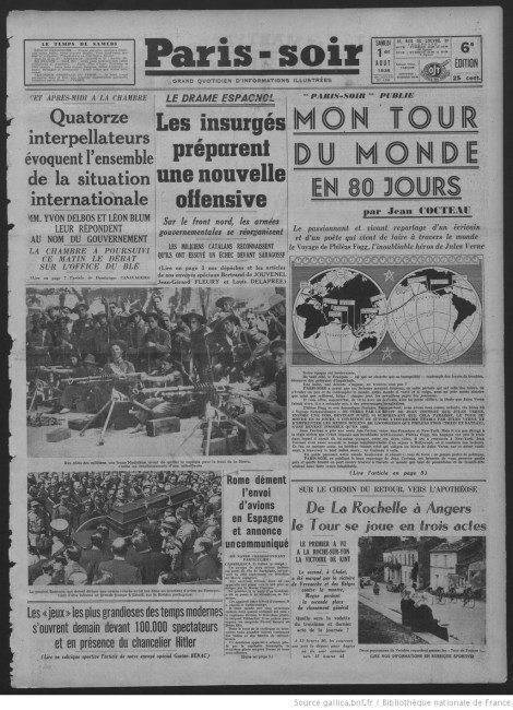 La une de Paris-Soir du 1er août 1936.