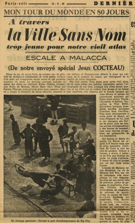 2. Cocteau Jean, Mon premier voyage (Tour du monde en 80 jours), Paris, Gallimard, 1936.