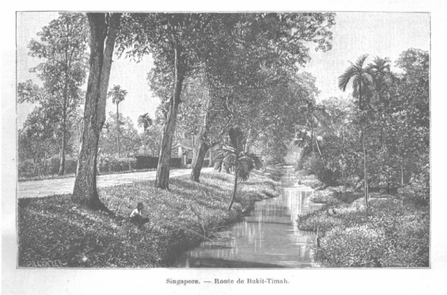 Il s’est rendu à Bukit Timah, au centre de l’île, où il a parcouru le domaine de Léopold Chasseriau, planté pour moitié avec du manioc et pour moitié avec du café du Libéria.