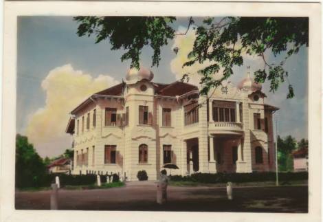 Comme à leur habitude, nos globe-trotters laissent les coolies courir au gré de leurs fantaisies. Il est aisé de reconstituer l’itinéraire choisi par les coolies pour plaire à des touristes européens. Derrière le débarcadère, dont le dernier vestige est aujourd’hui une vieille grue, se trouve la place que les Hollandais ont entouré de bâtiments solides et austères, et que les Anglais ont peint en rouge en 1911. Après en avoir sans doute fait le tour, ils se sont élancés sur Fort Road, cette promenade ouverte par les Anglais (après avoir détruit la forteresse au début du XIXème siècle), qui épouse le pied de la colline historique et qui longe la mer ; sur la gauche, de vieilles maisons hollandaises, et puis, sur la colline (sur laquelle ils ne grimperont pas), la masse sombre de la vieille église en ruines ; sur la droite, face à la mer, de vieux canons et des couleuvrines, vestiges d’une histoire tumultueuse.