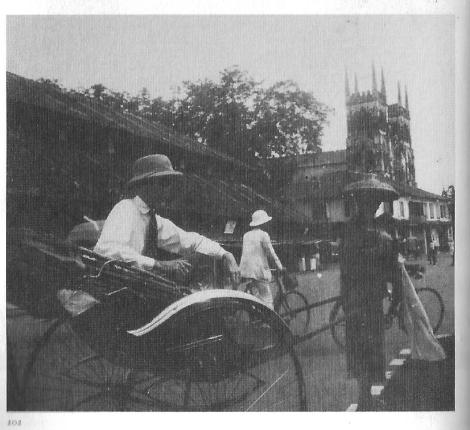 Nos voyageurs retrouvent d’abord les pelouses et les parcs des escales précédentes, influence anglaise oblige, et la plus grande salubrité (déjà). Ils débarquent du Karoa le 30 avril, et doivent attendre le bateau en correspondance pour le Japon. Ils vont passer quatre nuits à l’Adelphi, un des meilleurs hôtels de la ville (après le mythique Raffles, mais les propriétaires sont les mêmes depuis 1903, les frères Sarkies) au cœur du quartier colonial, dont la terrasse de la chambre donne sur la cathédrale anglicane, Saint André. Bien sûr, ils vont poursuivre leur tournée des fumeries d’opium (ils fument trop sans doute, car « nous avons maigri de moitié. Nos costumes flottent », écrit Jean Cocteau) et faire des fêtes nocturnes avec leur coolies.
